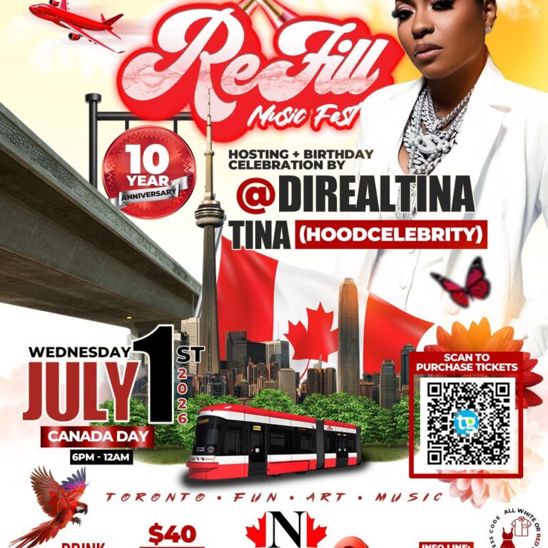 Refill Group Inc. @refillmusicfest presents ๐ฝ๐๐๐๐๐ ๐๐๐๐๐ ๐ฑ๐๐๐ ๐จ๐ฆ Canada day Holiday ๐ Wednesday July 1stโฐ 6pm – 12am๐ National Event Venue1000 Finch Avenue West. ๐ https://www.ticketgateway.com/event/view/refill-2026 DRESSCODE โช๏ธ โช๏ธOR ๐ดโช๏ธ Hosting + Birthday Celebration By @Direaltina Tina (HOODCELEBRITY)Booths & Info โก๏ธ@refillmusicfest647 564 1634416 629-9365